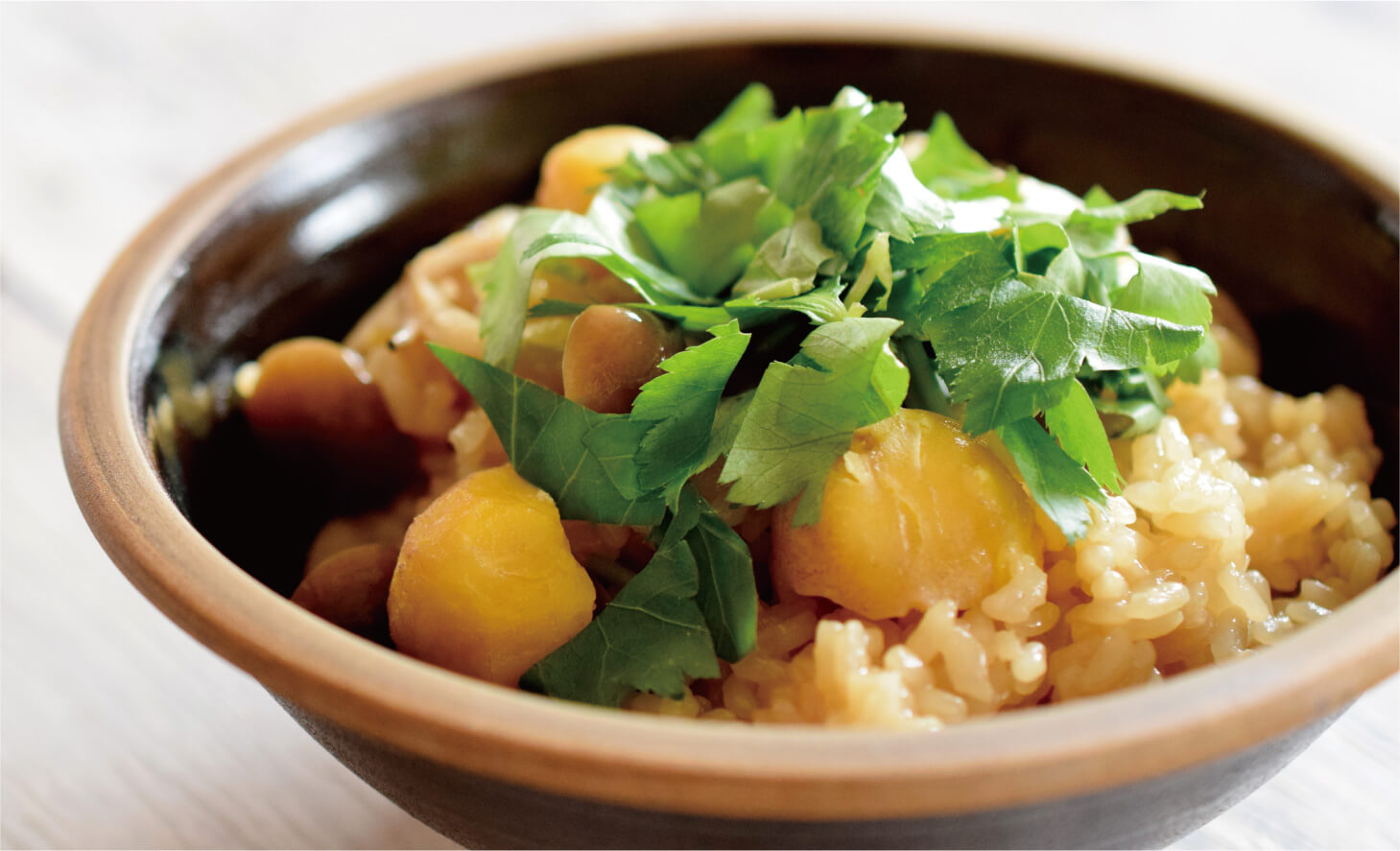 - 洗って水気を切った米にしめじ、(A)、栗を加えて軽く混ぜ合わせ、水を加えていつもどおりに炊きます。