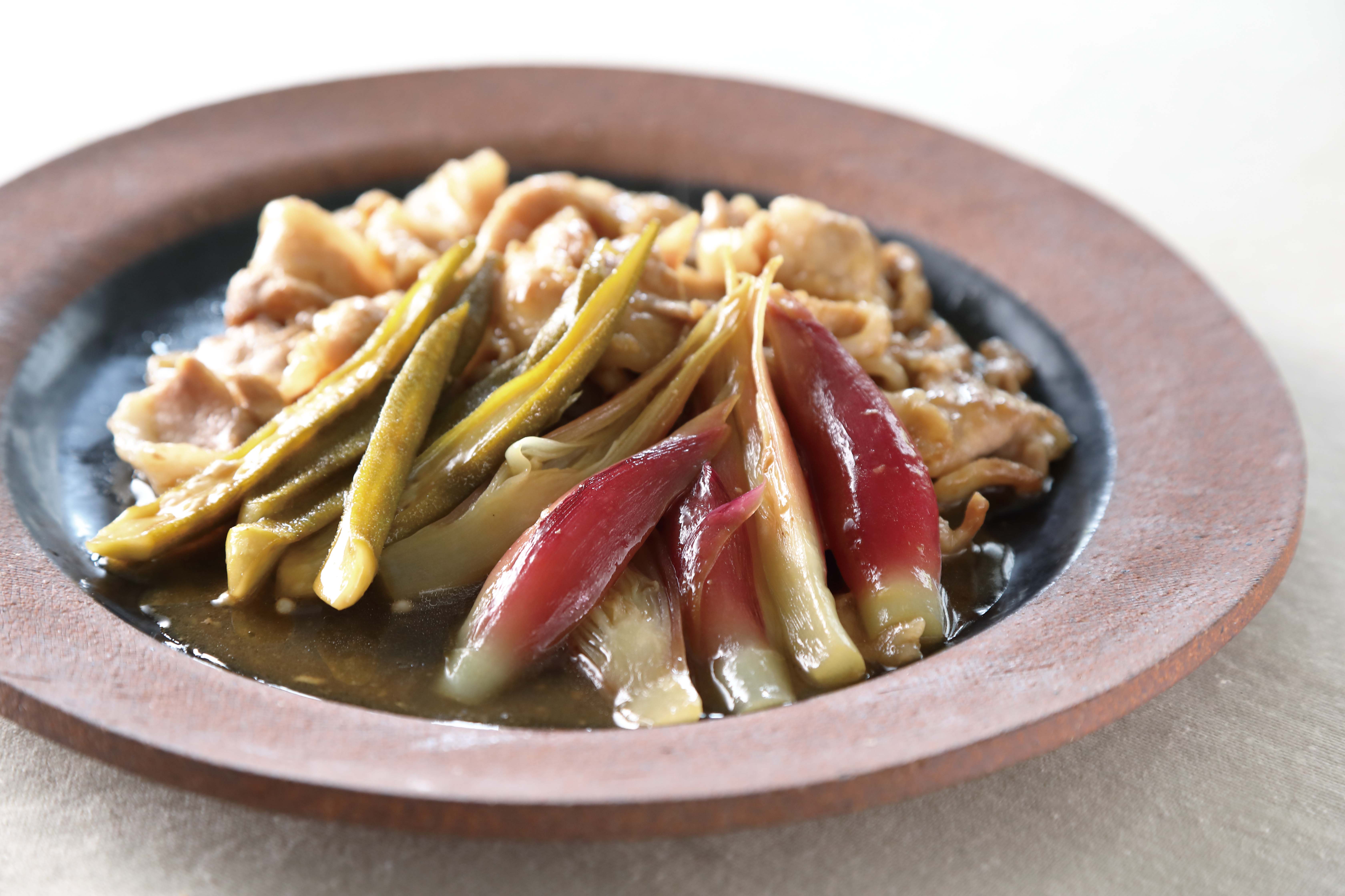 HOME / トピックス / お知らせ / みょうがとオクラと豚肉の甘酢炒め