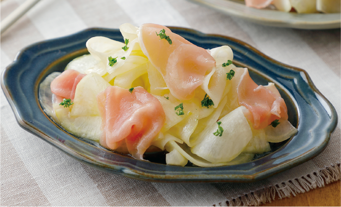 - ポリ袋に大根と(A)を入れてよくもみ込み、袋の空気を抜いて5分ほど置く。