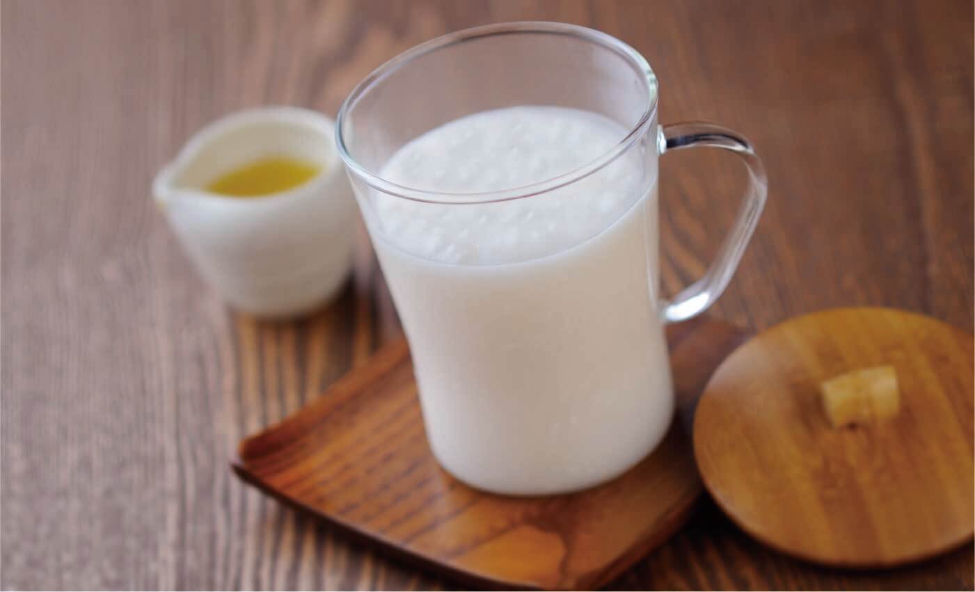 ※そのまま長く保温状態を続けると、酸味が出てきます。 - 飲む分だけを温め、好みでしょうが汁を入れます。