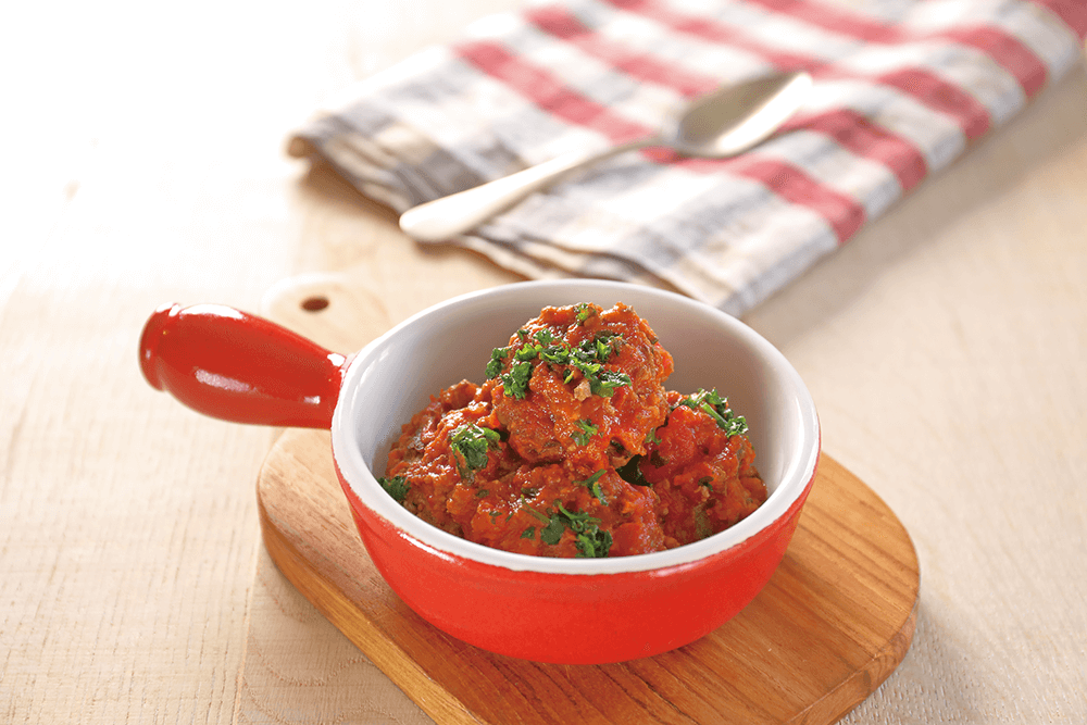 - フライパンにオリーブ油とにんにくを入れて熱し、香りが出たら強火で団子の表面だけに焦げ目が少しつくように転がしながら焼きます。やわらかくて形がくずれやすいので、ハンバーグのように表裏を焼くだけでもかまいません。きれいな丸にしたい場合は揚げるとよいでしょう。